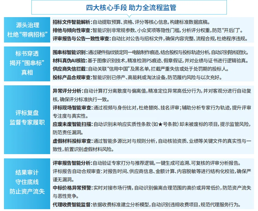 识别抱团投标、报价协同;NLP比对“文本指纹”,锁定雷同标书